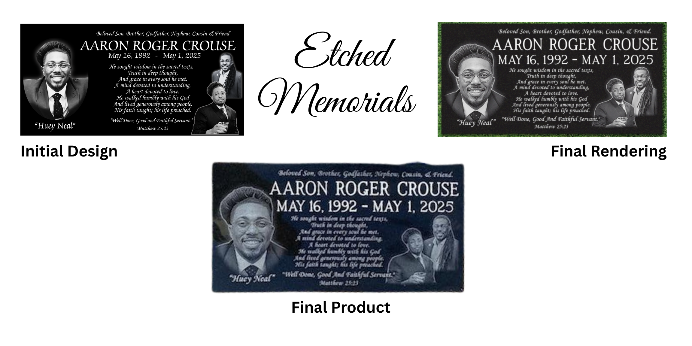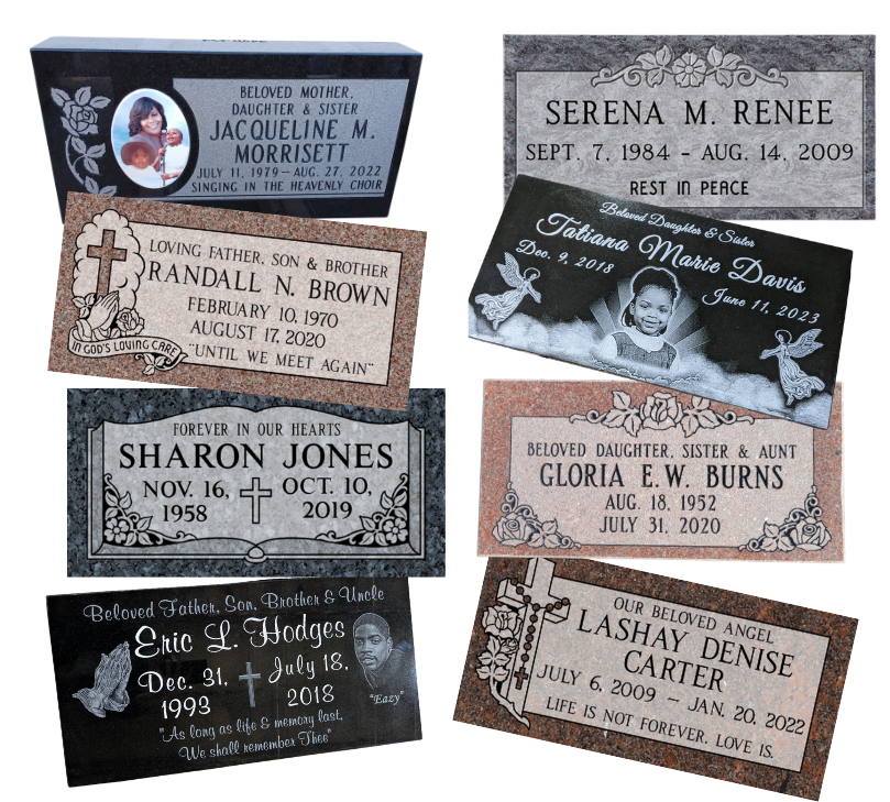 At Melanated Memorials, you can rely on us to provide quality products at a reasonable price.we offer a wide range of granite designs and colors to assist you in creating a classic memorial. We specialize in the thoughtful and personalized creation of memorial stones, ensuring that each piece stands as a timeless tribute to the unique lives they represent. Explore our diverse range of materials, designs, and customization options to create a memorial stone that truly reflects the individuality and legacy of your loved one. From selecting the perfect stone to adding personalized inscriptions, our team is committed to guiding you through the process with empathy and respect.